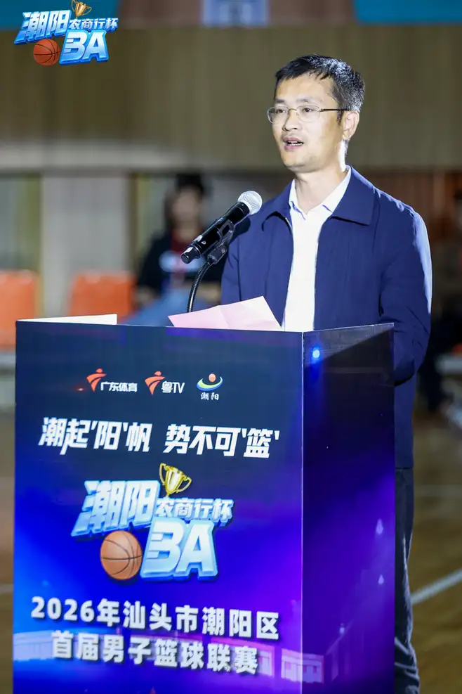 开幕式上,汕头市潮阳区政府副区长、金浦街道党工委书记 郑楚泽表示,体育强则城市强,全民健身是实现全民健康的重要途径,更是推动社会进步的重要动力。打造 “潮阳 BA” 品牌赛事,是区委、区政府深入贯彻落实全民健身国家战略、主动融入健康中国建设大局的具体实践,也是深化 “百千万工程” 建设、激活基层发展活力的有力举措。赛事的举办,不仅能丰富群众精神文化生活、提升全民身体素质,更能凝聚起全区上下团结奋进的强大合力,展现潮阳在新时代勇立潮头、奋发有为的精神风貌,为潮阳经济社会高质量发展注入强劲体育动能。